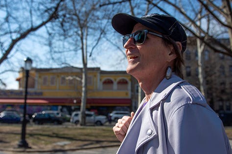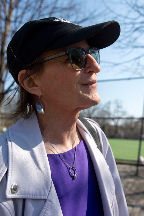 McKenzie is attuned to how the neighborhood has changed these past few years, something she notices in many ways, including the kinds of dogs people walk as affable mutts give way to fluffy, more extravagant versions of woman’s best friend (she and Jules have cats). We walk around the park, past its markers indicating distance, and find ourselves on a bench. We chat, watching people go by.