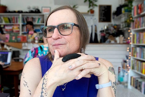 The brilliant scholar and writer McKenzie Wark is a vision in purple when I meet her at Hive Mind Books. Owned by her partner Jules Wernersbach, Wark is a regular at the bookstore, which specializes in queer texts. Two of Wark’s own books, Raving and an anthology she co-edited called Writing on Raving, appear near the counter and signed editions are available.
