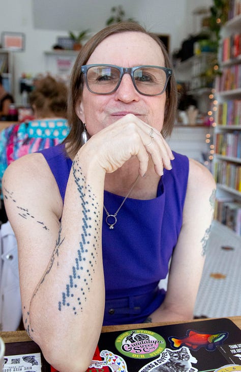 And here she is, laptop full of stickers, talking to me about the process of publishing her next book, about her arrival in New York from Australia, the parties that made her love nightlife, the parties that make her love nightlife still, raising children in the city, transitioning, the state of academia, what she does if/when she sees her students at raves (she follows their lead, either saying hello or giving them space, but is always available if they need her), and more.