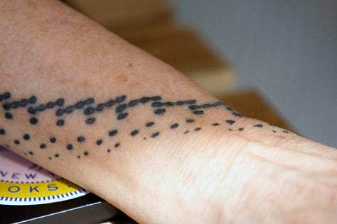I arrived here today after I ran into McKenzie at a party and she expressed interest in Miss Manhattan Hangs Out. I was beside myself, mostly because I have long been dazzled by just how unrelentingly cool she is–she who leaves for raves at 2am and knows the best ones don’t start until at least then; who has tattoos designed by DJs I’ve never heard of; who has recently presented her work in Rome, Lisbon, Salamanca, and Paris.