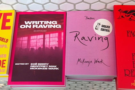 “Two of” is the key phrase here. Wark has authored or co-edited over 25 books over the course of her career, beginning in 1994, including theory, autofiction, and memoir. She is currently a Professor of Culture and Media at The New School, and the Program Director of the Gender Studies Department. In that time, she has developed an international audience, with her books translated into eleven languages. She tours her work frequently around the world. Writing on Raving has also evolved into a live reading, with light and sound design to match the theme, dancing to follow. It’s held in a location only disclosed upon RSVP.