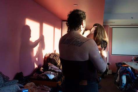 Performers retreat to the dressing room until the start of the show, and the low hum of a crowd buzzes outside. People who have shown up tonight know TRSA’s magic. Soon the audience is big enough that the venue has to add more chairs.